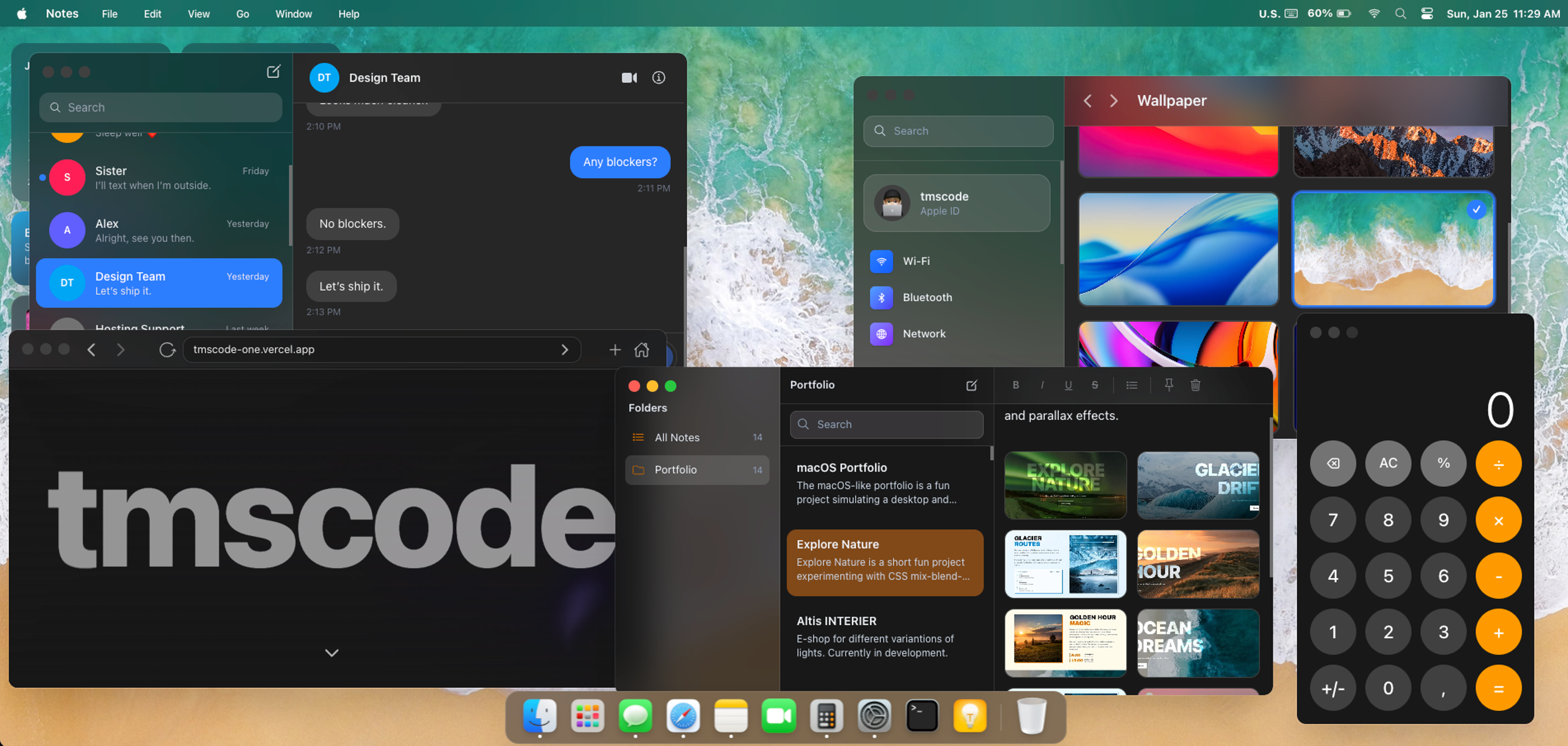 macOS Portfolio is an experimental personal project that simulates a macOS-like desktop environment in the browser. The goal was to replicate core system UI patterns—such as window management, draggable components, and layered interactions—while maintaining smooth performance and a clean codebase.