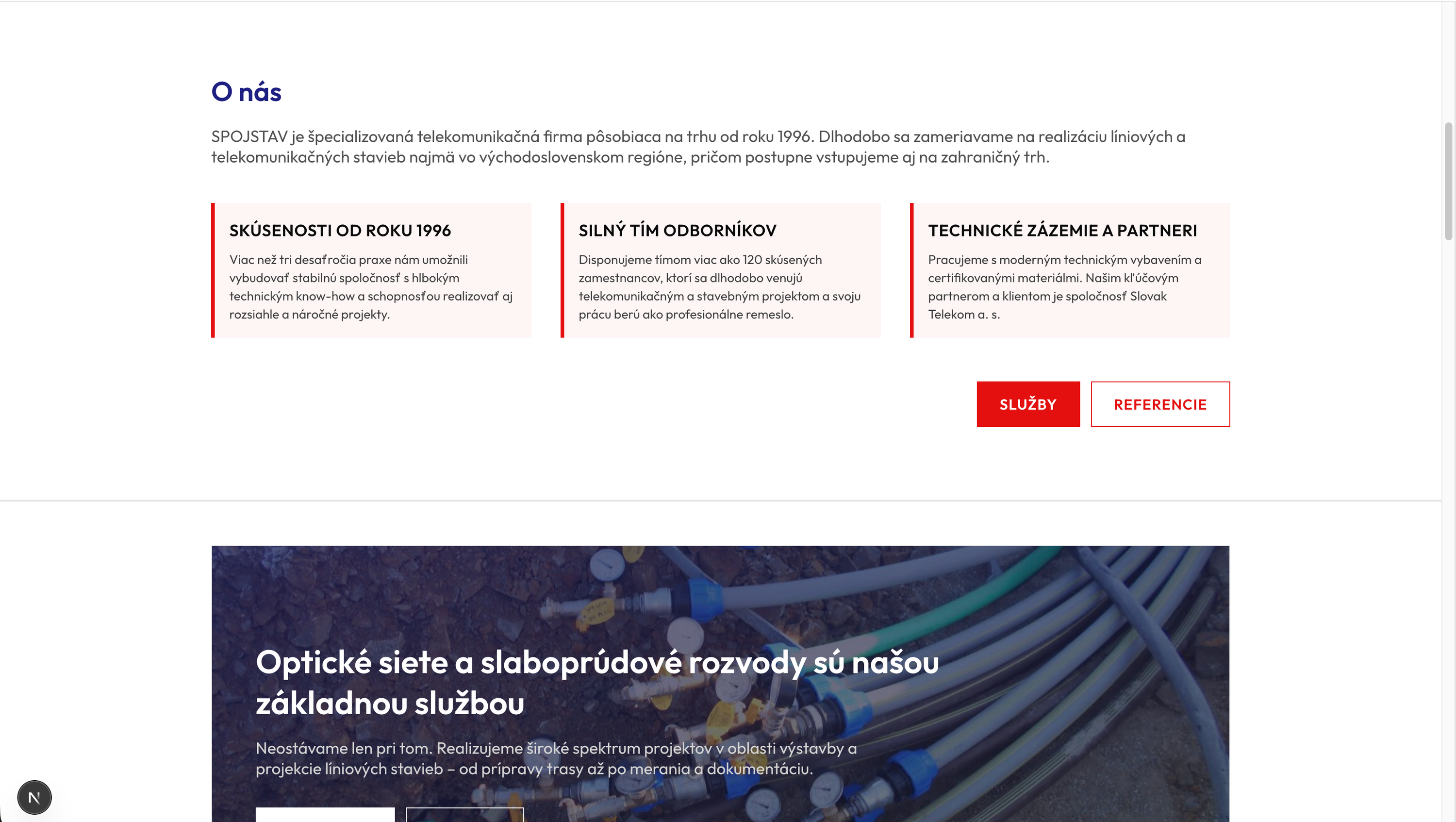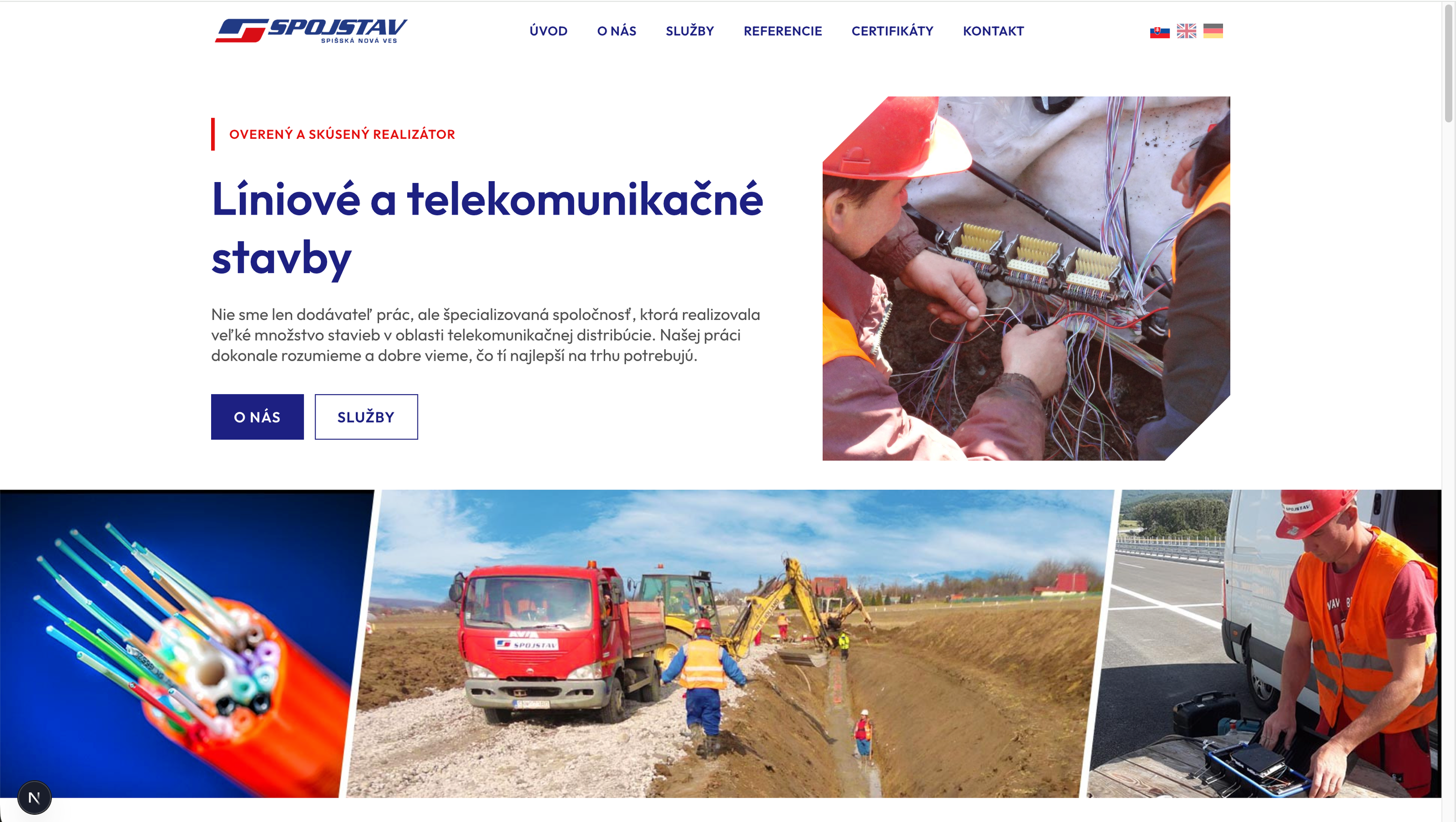 A presentation website for Spojstav Spišská Nová Ves s. r. o., focused on clearly showcasing construction services and completed projects.